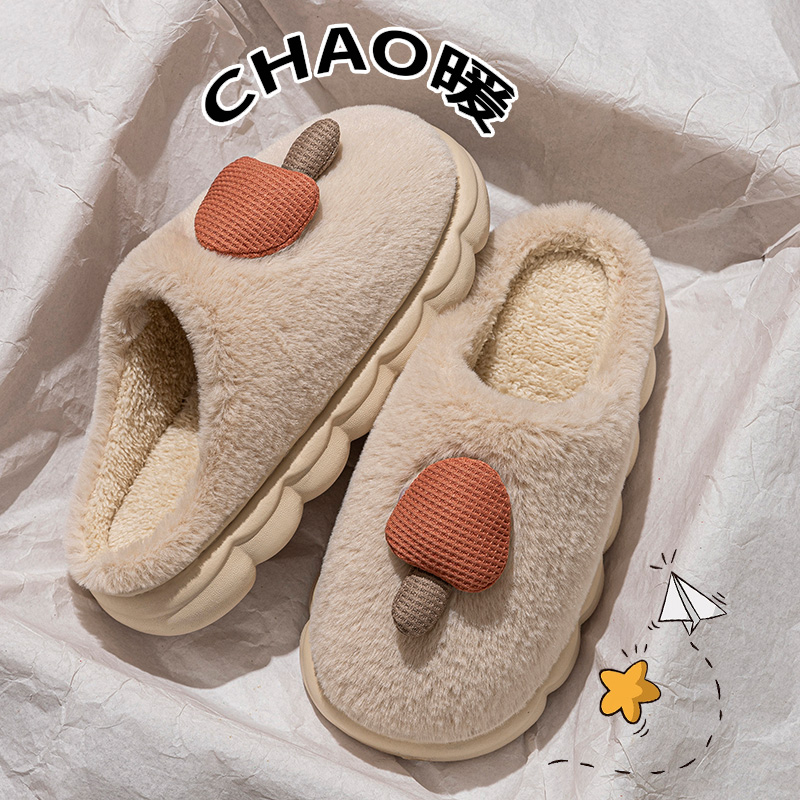 居家保暖绒毛防滑厚底情侣棉拖 冬季 可爱小蘑菇棉拖鞋 少女2025新款