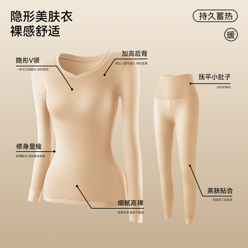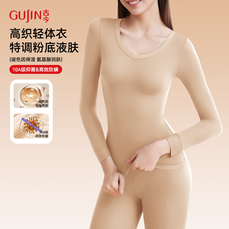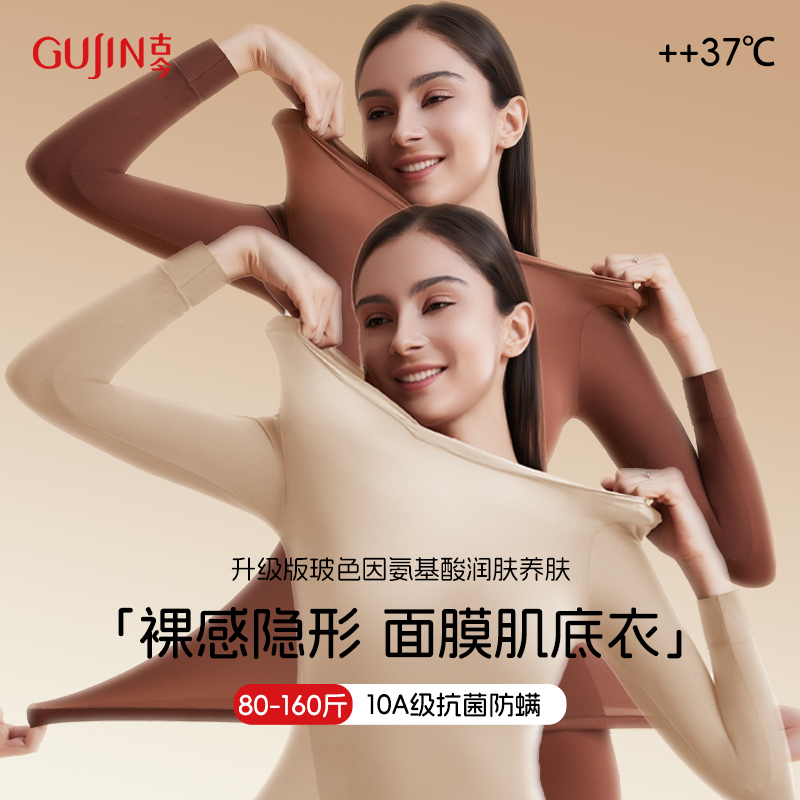超薄无痕肌底美肤打底衣 新款 古今黑色保暖内衣女士秋衣秋裤 套装