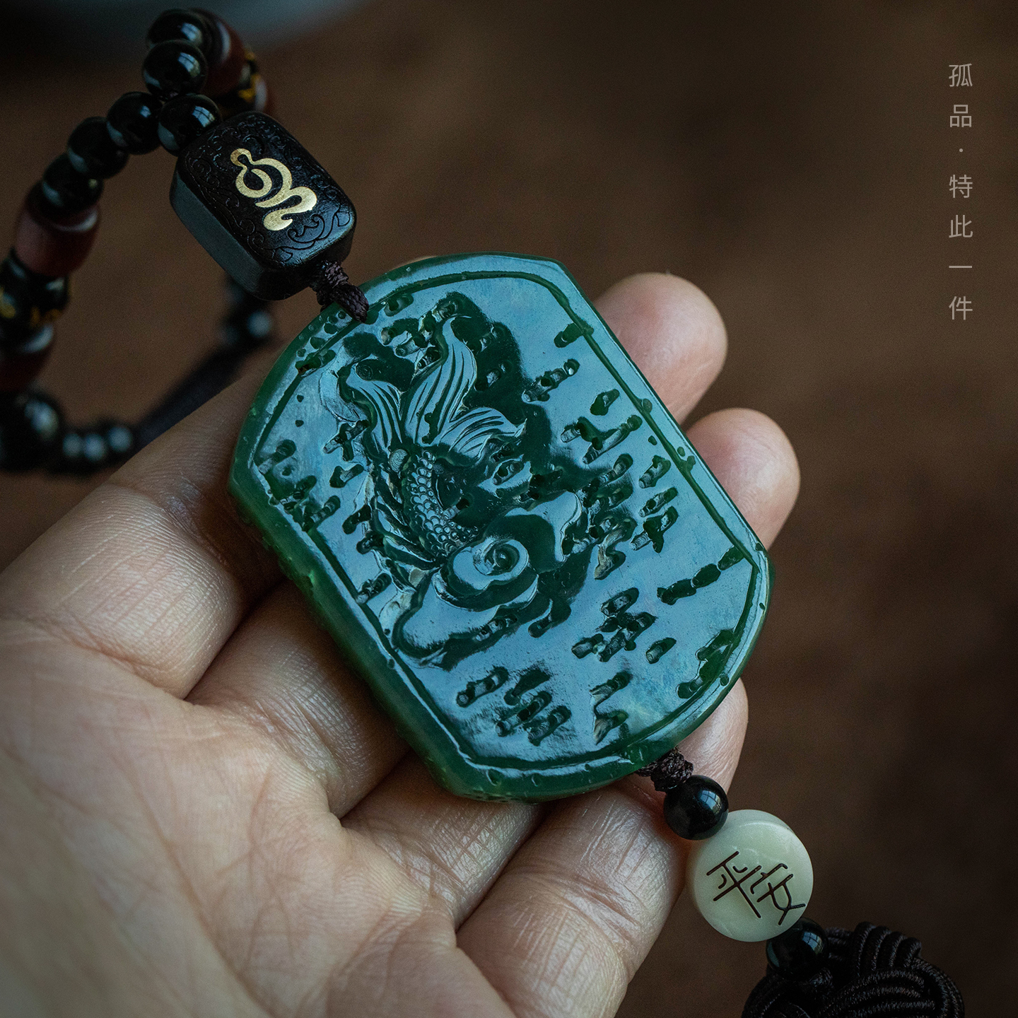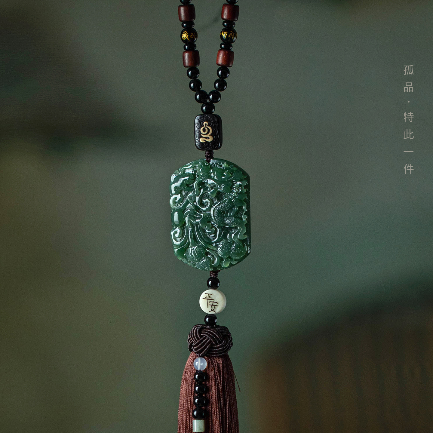 平安玉石汽车挂件和田玉雕刻车内挂饰六字高档礼一物一证 孤品