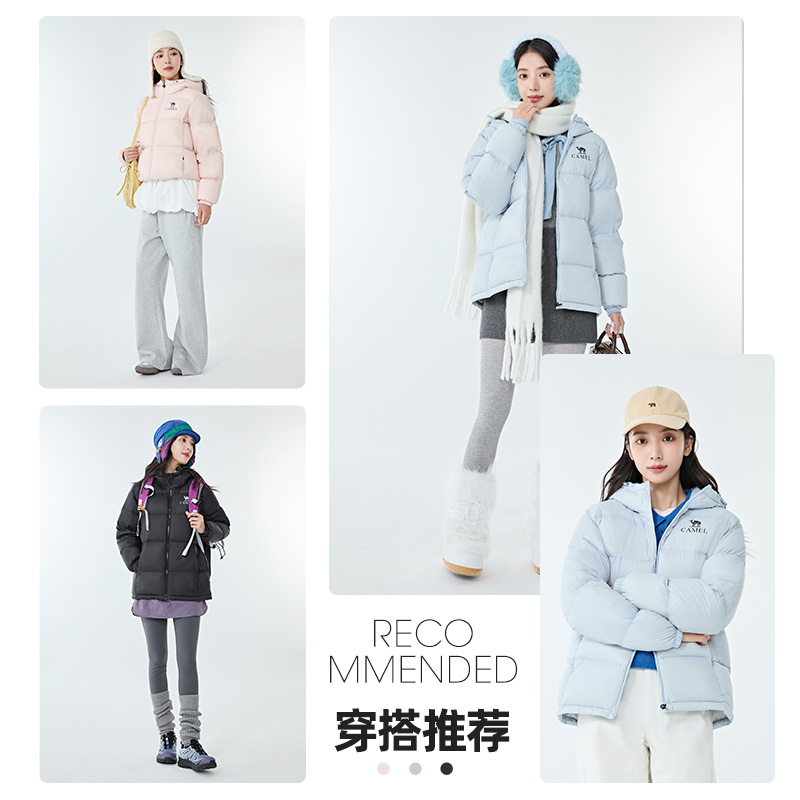 骆驼女装 银离子升温 羽绒服防风保暖情侣面包服 黑钻pro拒水绒