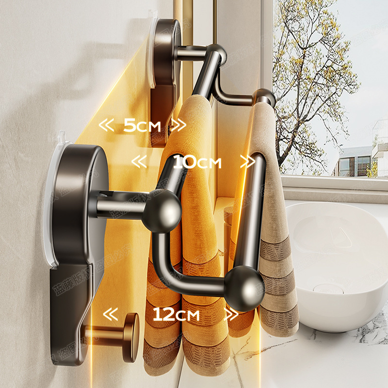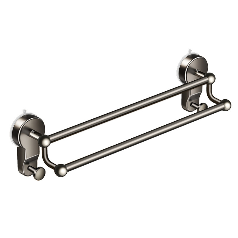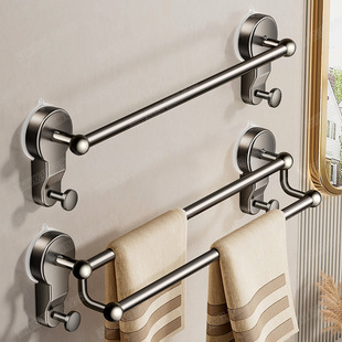枪灰吸盘式 挂杆厕所洗手间收纳挂架 毛巾置物架卫生间免打孔壁挂式
