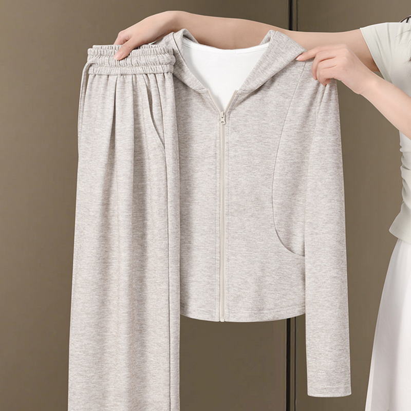 KHV真维斯早秋套装 宽松连帽卫衣阔腿小个子运动两件套 女2025新款