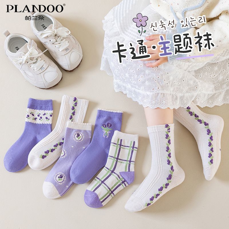 帕兰朵女童袜子棉质高弹力不勒腿韩版 中筒紫色调简约早秋舒适童袜