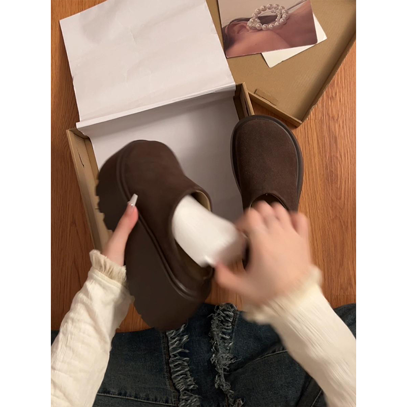 66001 秋冬加毛包头半拖鞋 DevoLife软木拖鞋 女加绒保暖休闲毛毛鞋