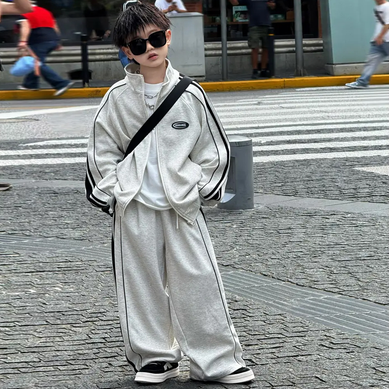 宽松休闲开衫 男童秋季 儿童帅气中大童春秋款 2025新款 两件套潮 套装