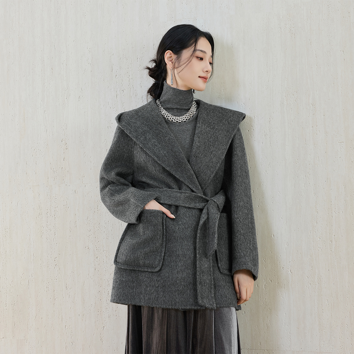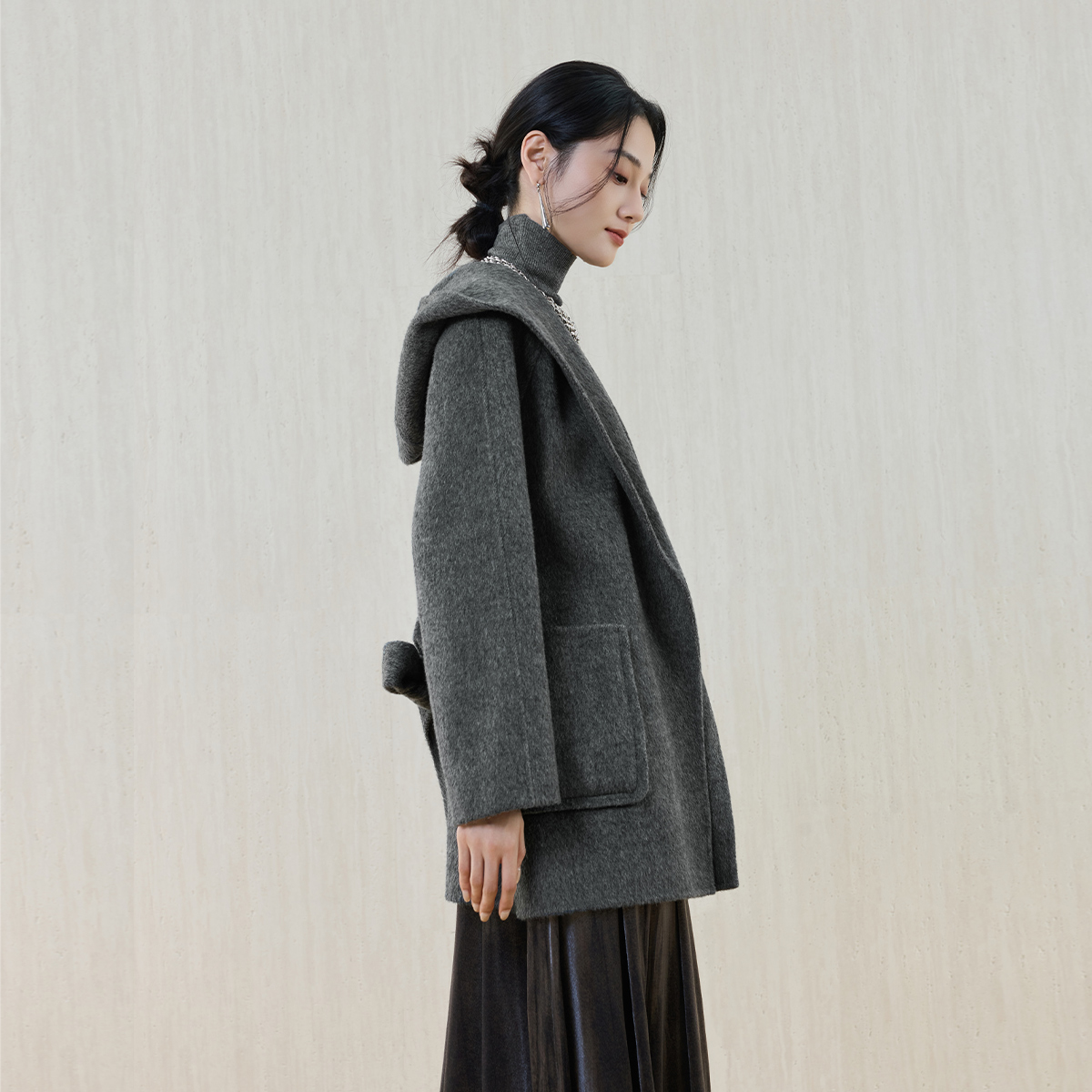 连帽外套清雅 暗扣开襟插肩长袖 佳人苑毛呢外套女2025年冬季 新款