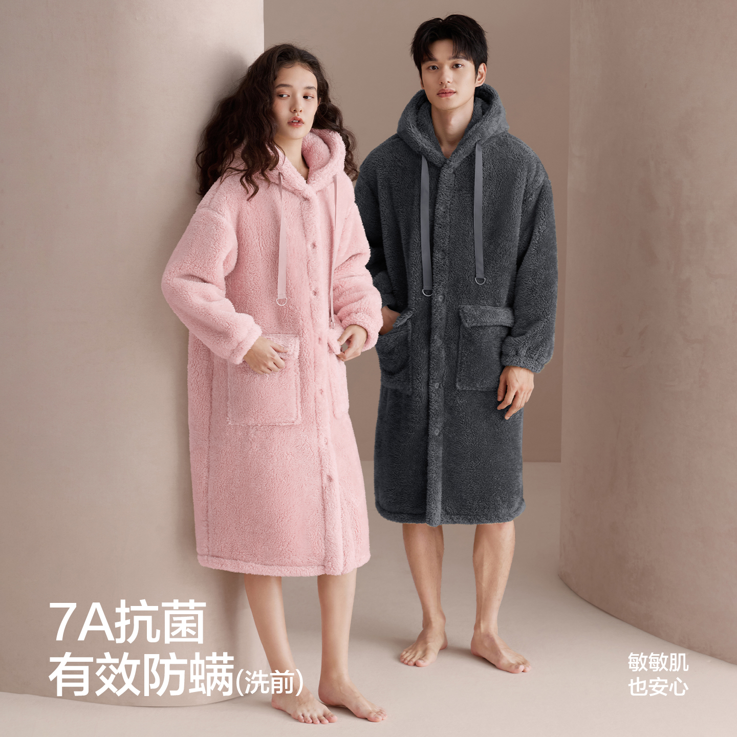 红豆居家暖暖绒情侣睡袍连帽可外穿睡衣加厚冬 衣橱 所有姐姐