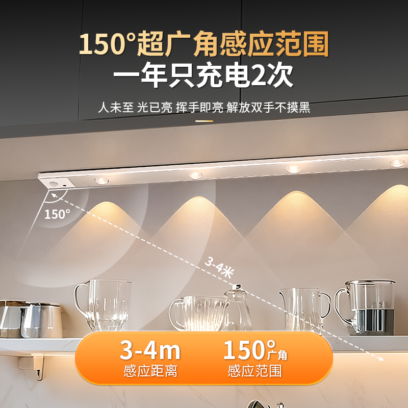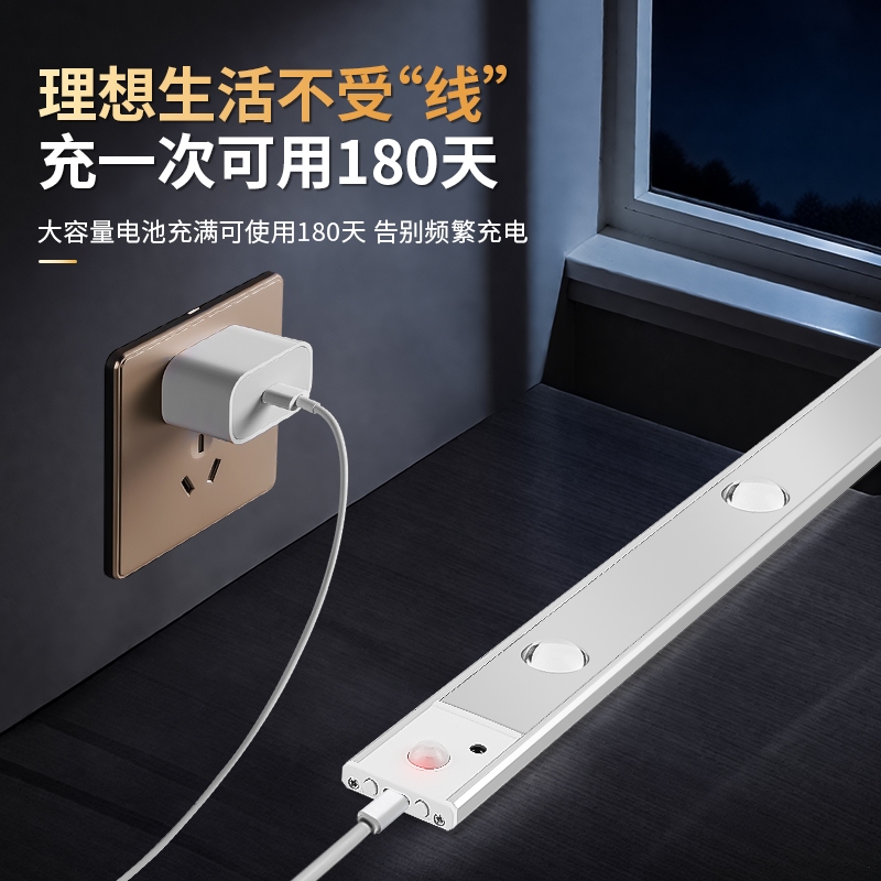 人体感应灯带自粘无线磁吸厨房橱柜酒柜衣柜玄关鞋 柜led灯条充电