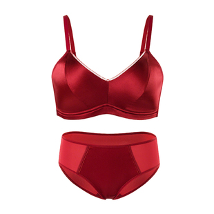 桑蚕丝结婚红色内衣内裤 情侣一对女方陪嫁物品全整套 新娘新郎套装
