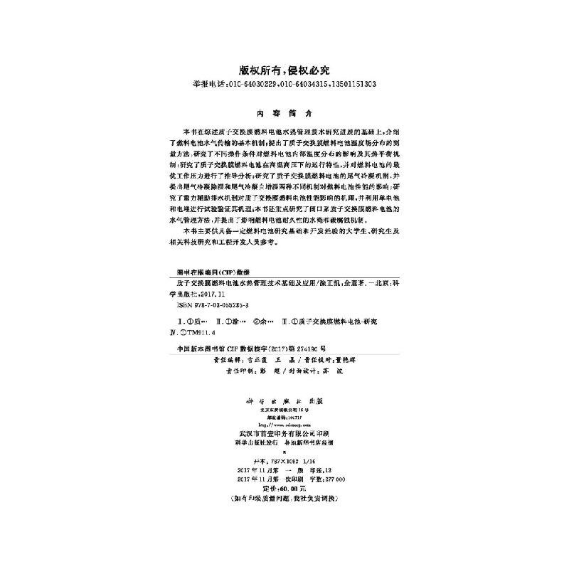 质子交换膜燃料电池水热管理技术基础及应用 余意 涂正凯