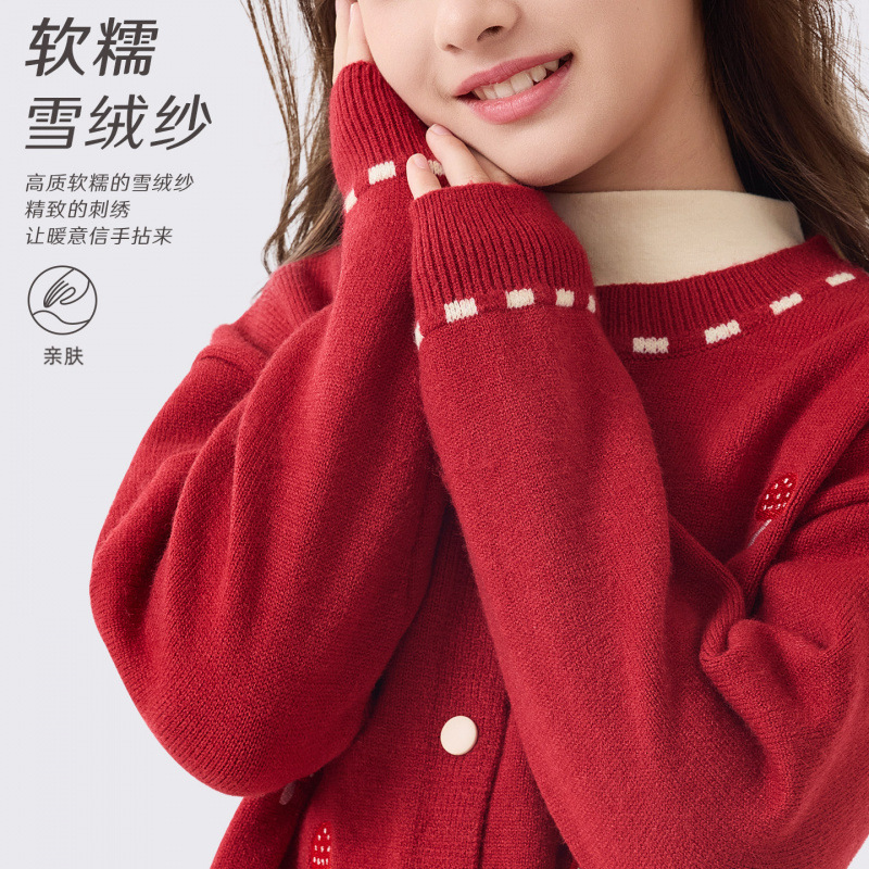 唐狮2025秋冬毛衣慵懒风针织开衫 外套女撞色爱心复古毛衣外套