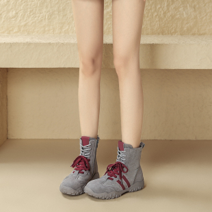 百搭轻便显脚小短筒靴高帮登山德训鞋 秋季 2025新款 复古马丁靴女款