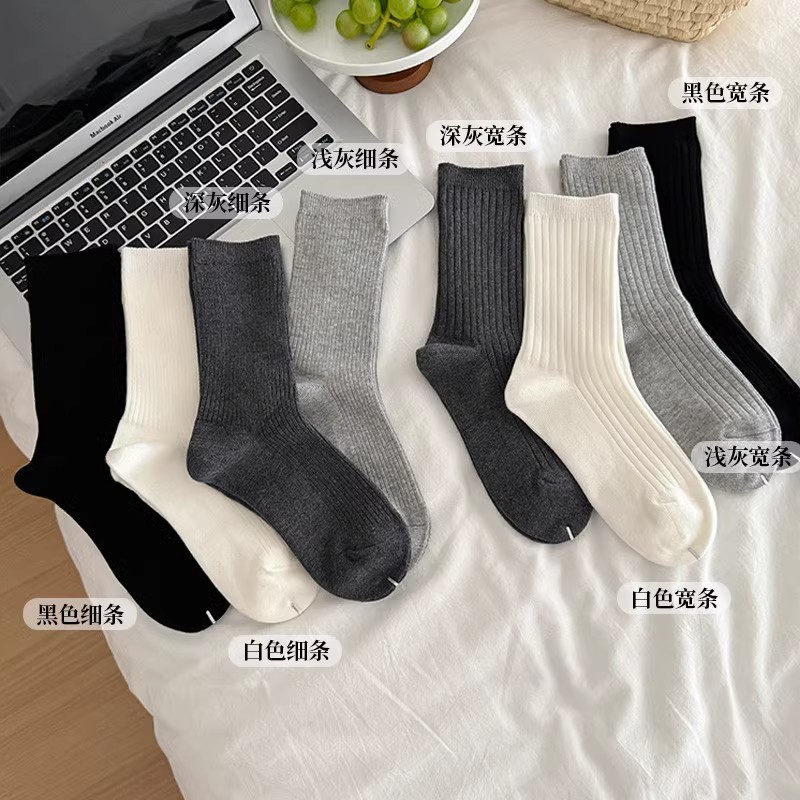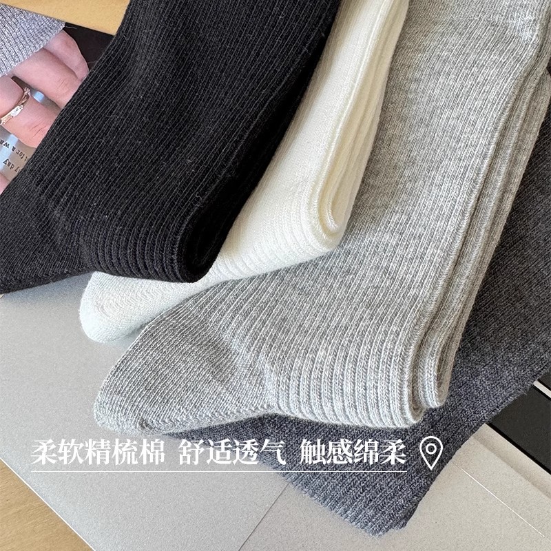 长袜春秋 全棉无骨白色堆堆袜女配德训鞋 灰色袜子女中筒袜夏季 薄款