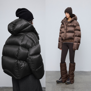 短款 外套女情侣反季 连帽黑色面包服 2025新款 骆驼火山羽绒服男冬季