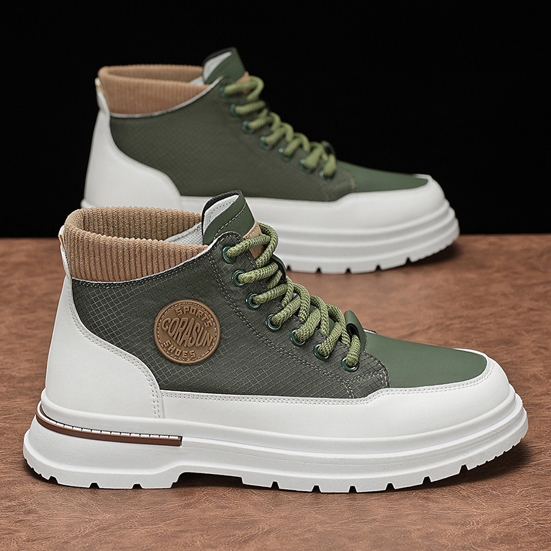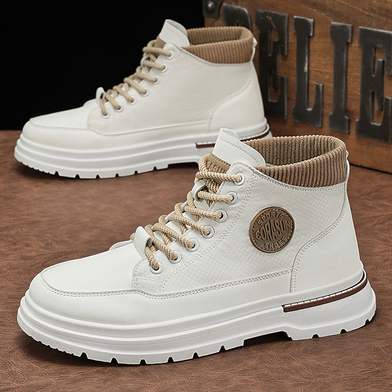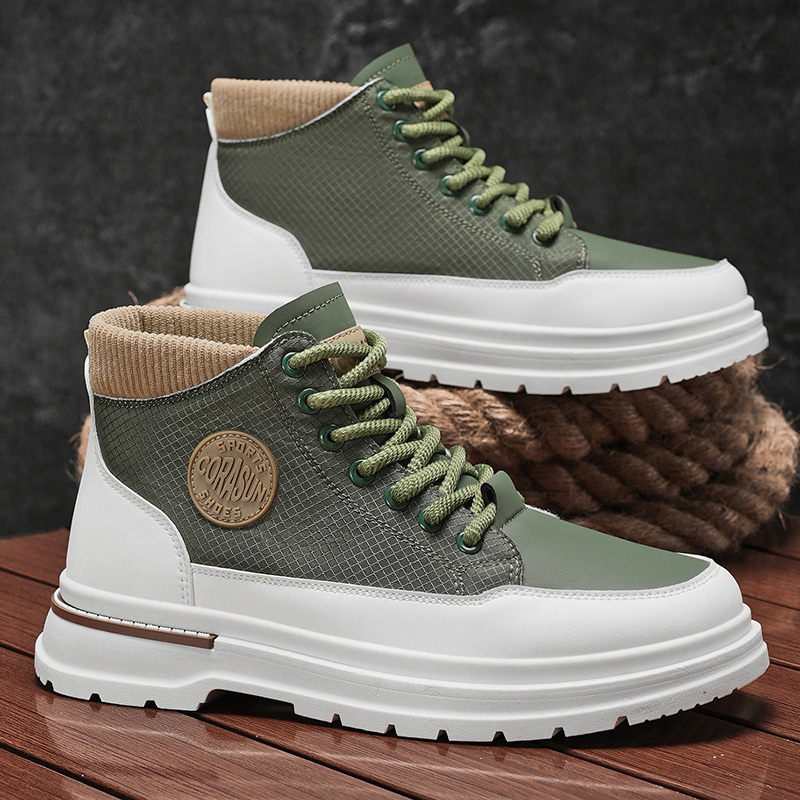 46皮面增高运动工装 高帮男鞋 大码 男士 马丁靴 秋冬休闲厚底中帮板鞋