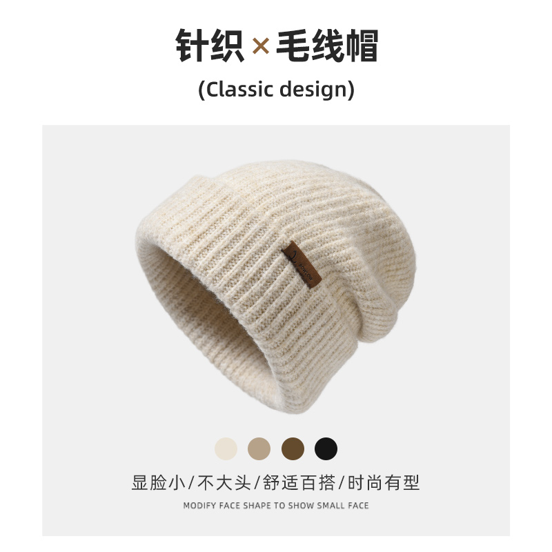 大头围毛线帽女秋冬季 包头帽 显脸小防寒护耳针织帽子冷帽2025新款