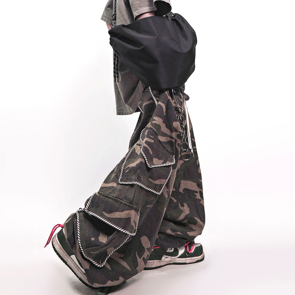 水洗闪电裂纹宽松微喇长裤 男2025新款 潮牌直筒牛仔裤 ROUTE66美式