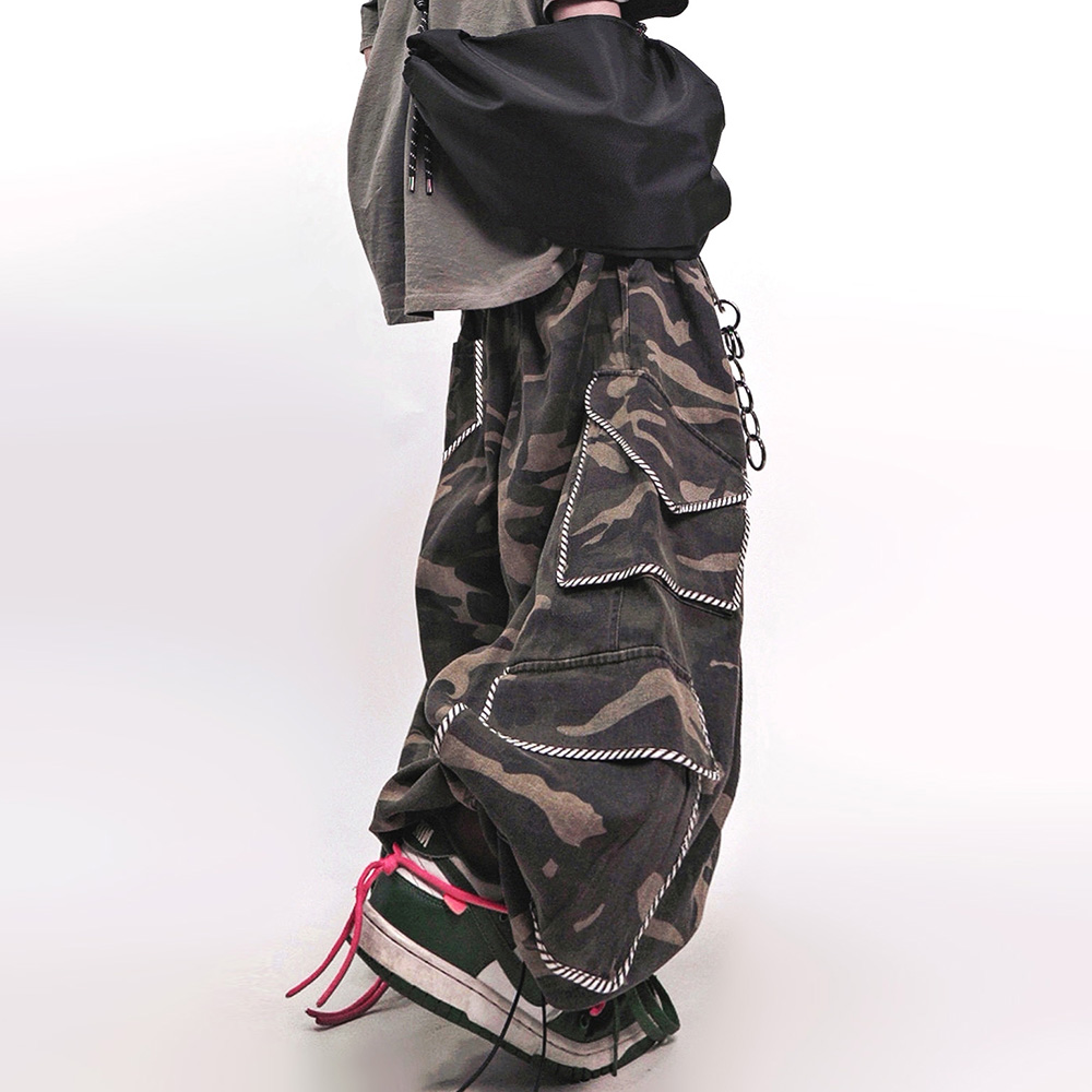 松弛老钱风撞色宽松阔腿裤 女2025秋新款 325332074 Moda牛仔裤 Vero