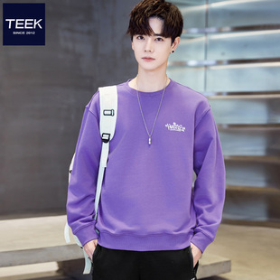 T恤美式 字母印花长袖 潮牌上衣服 纯棉卫衣2025秋季 TEEK深紫色男士