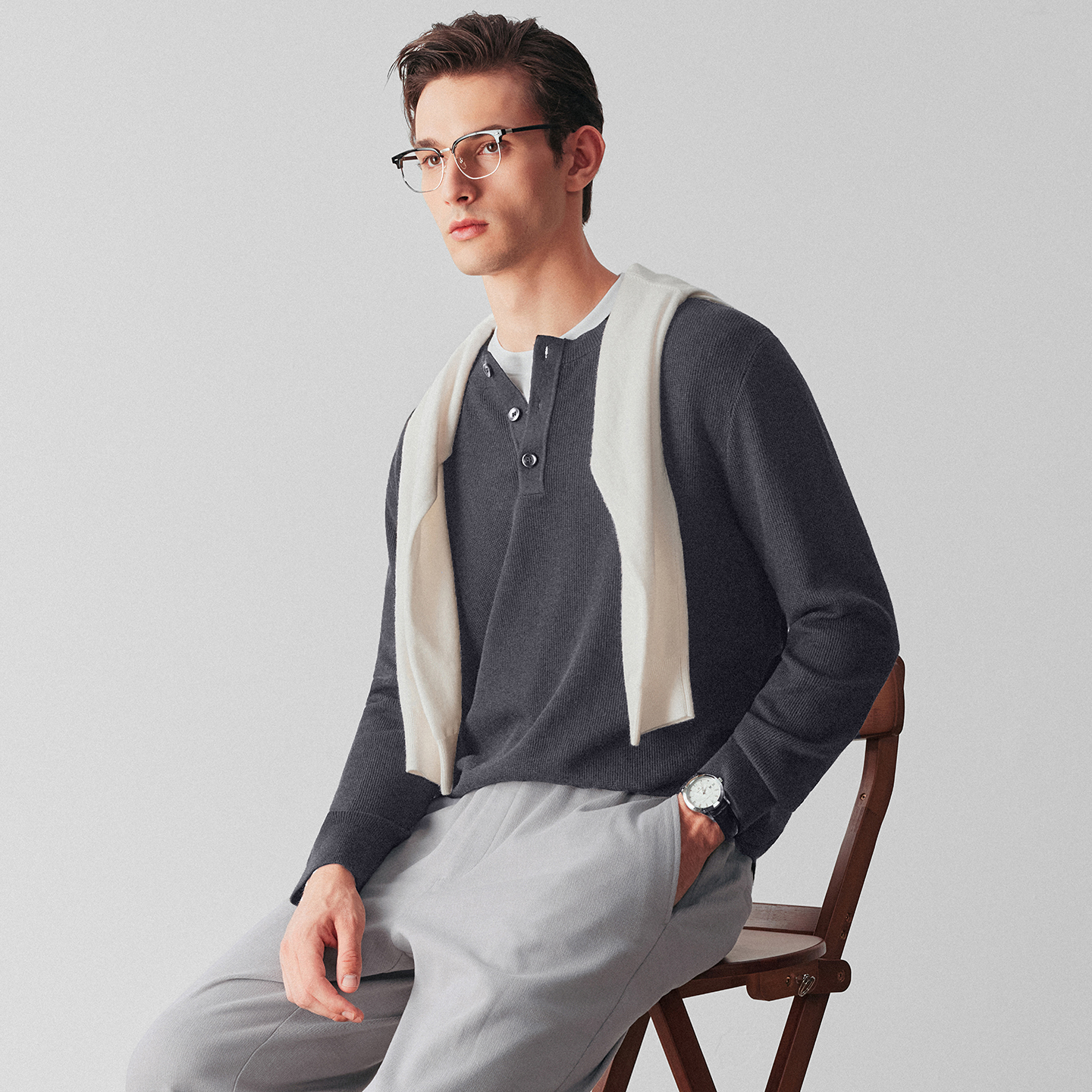 男2025秋新英伦风休闲易打理毛衫 柏品亨利领羊毛针织衫 可机洗