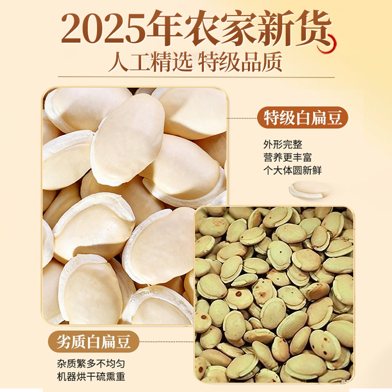 新货白扁豆500g农家自种白扁豆子正宗老品种五谷杂粮炒熟打粉尝鲜