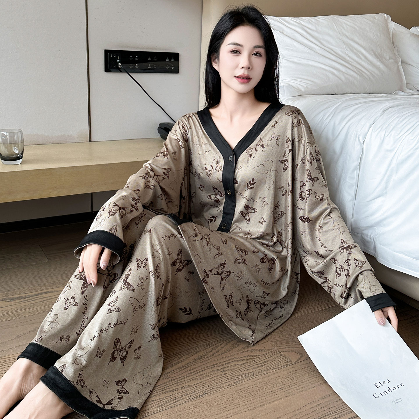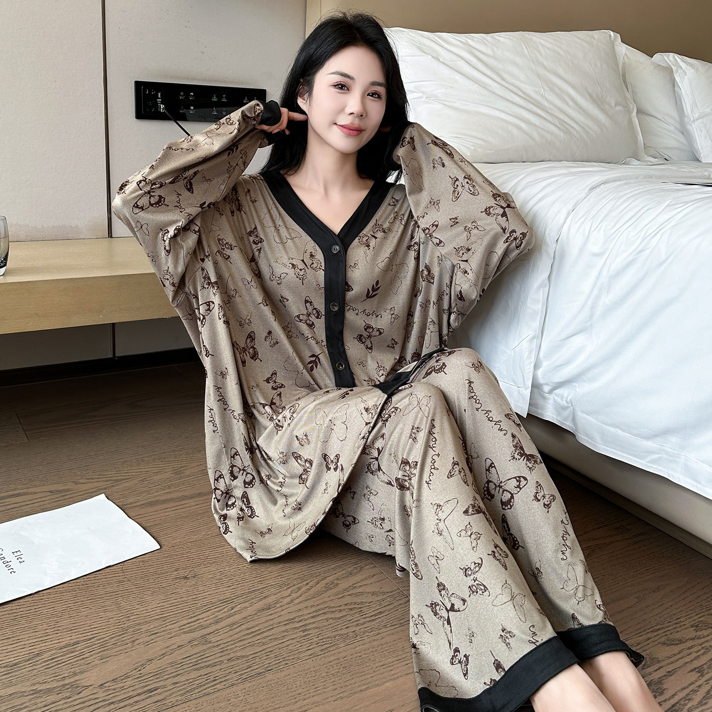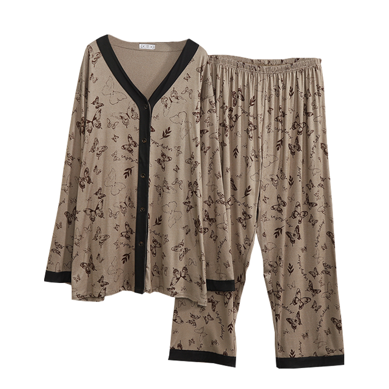 时尚 柔软莫代尔棉大码 开衫 套装 家居服 长袖 贝妍高级感睡衣女春秋季