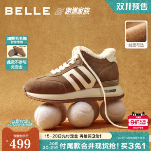 棉鞋 子新款 百丽小金甘厚底加绒高帮德训鞋 毛毛休闲鞋 双11预售