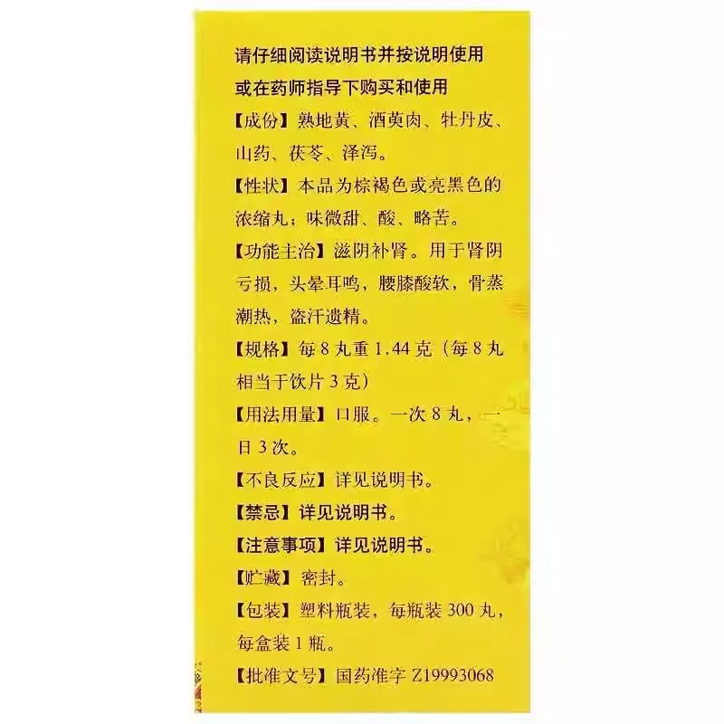 浓缩丸 六味地黄丸 滋阴补肾腰膝酸软头晕耳鸣 北京同仁堂 300丸