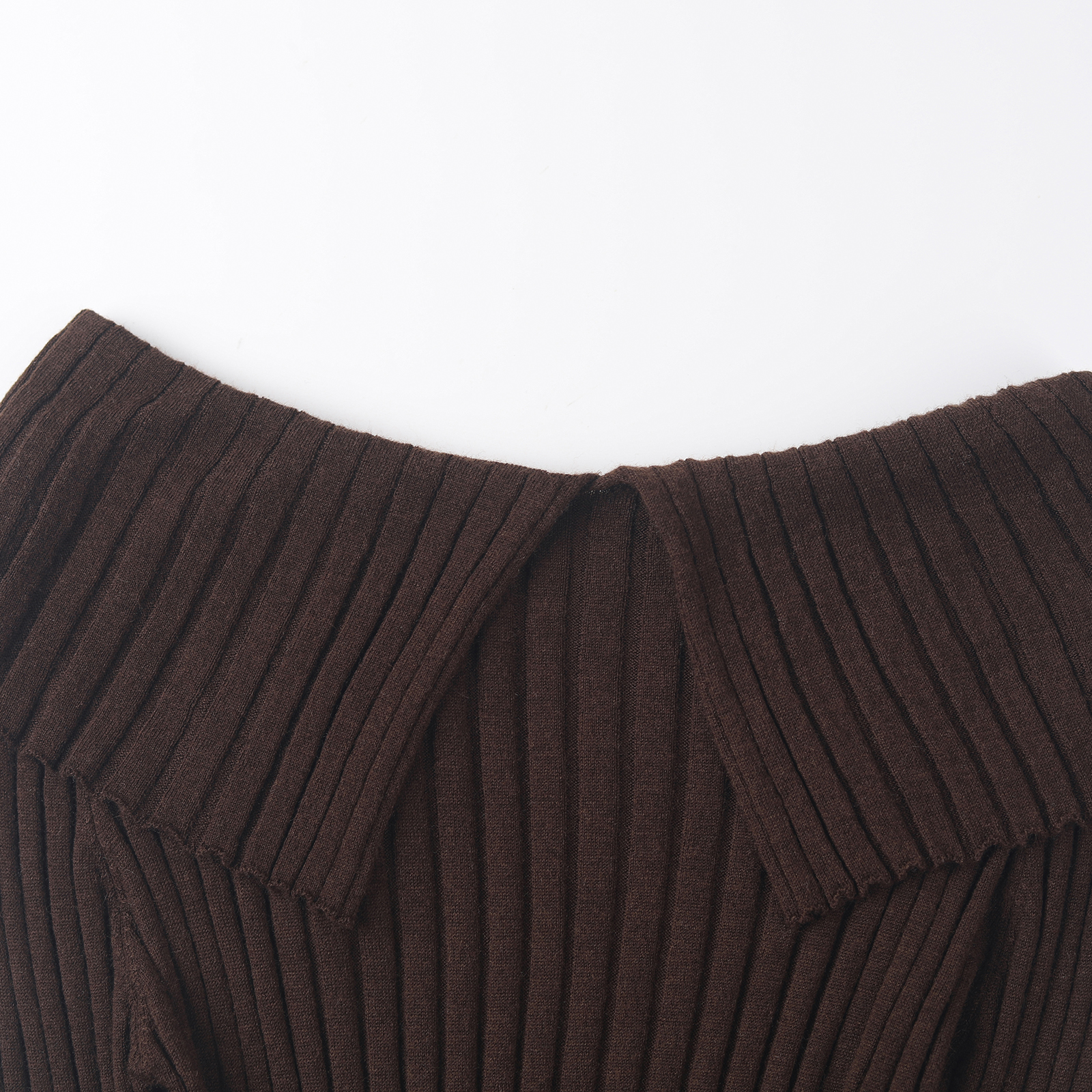 新品 2025秋季 简约休闲上衣女 try羊毛温柔感一字肩翻领针织衫 wana
