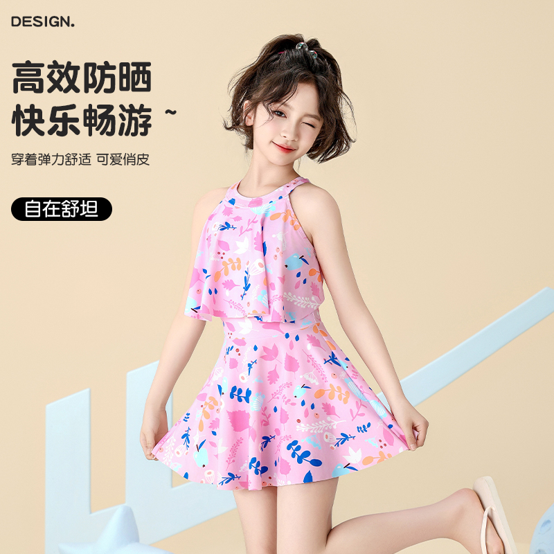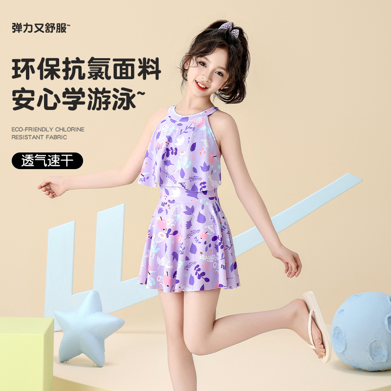 回力儿童泳衣女孩2025新款 中大童女童宝宝连体泡温泉速干专业泳装