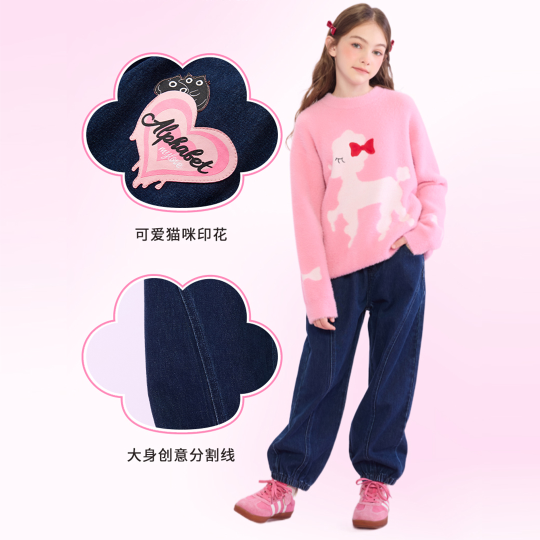 爱心膨胀 儿童洋气灯笼裤 爱法贝元 女童牛仔裤 子 气牛仔25秋新款