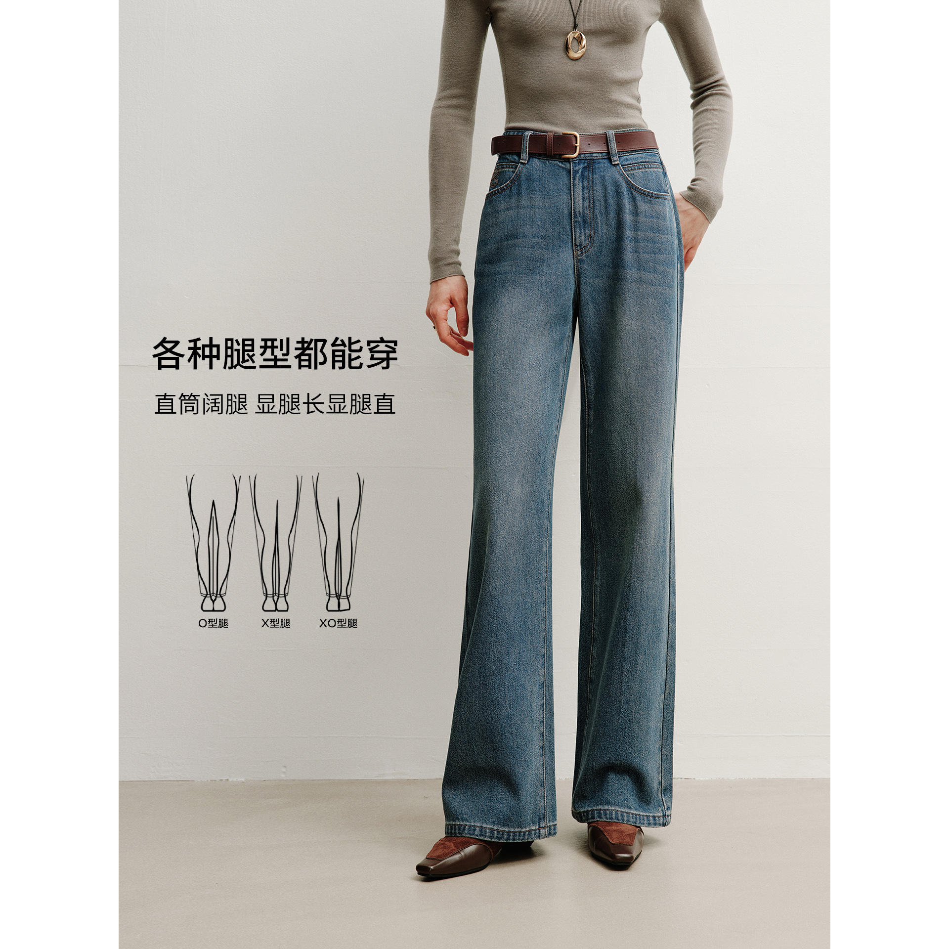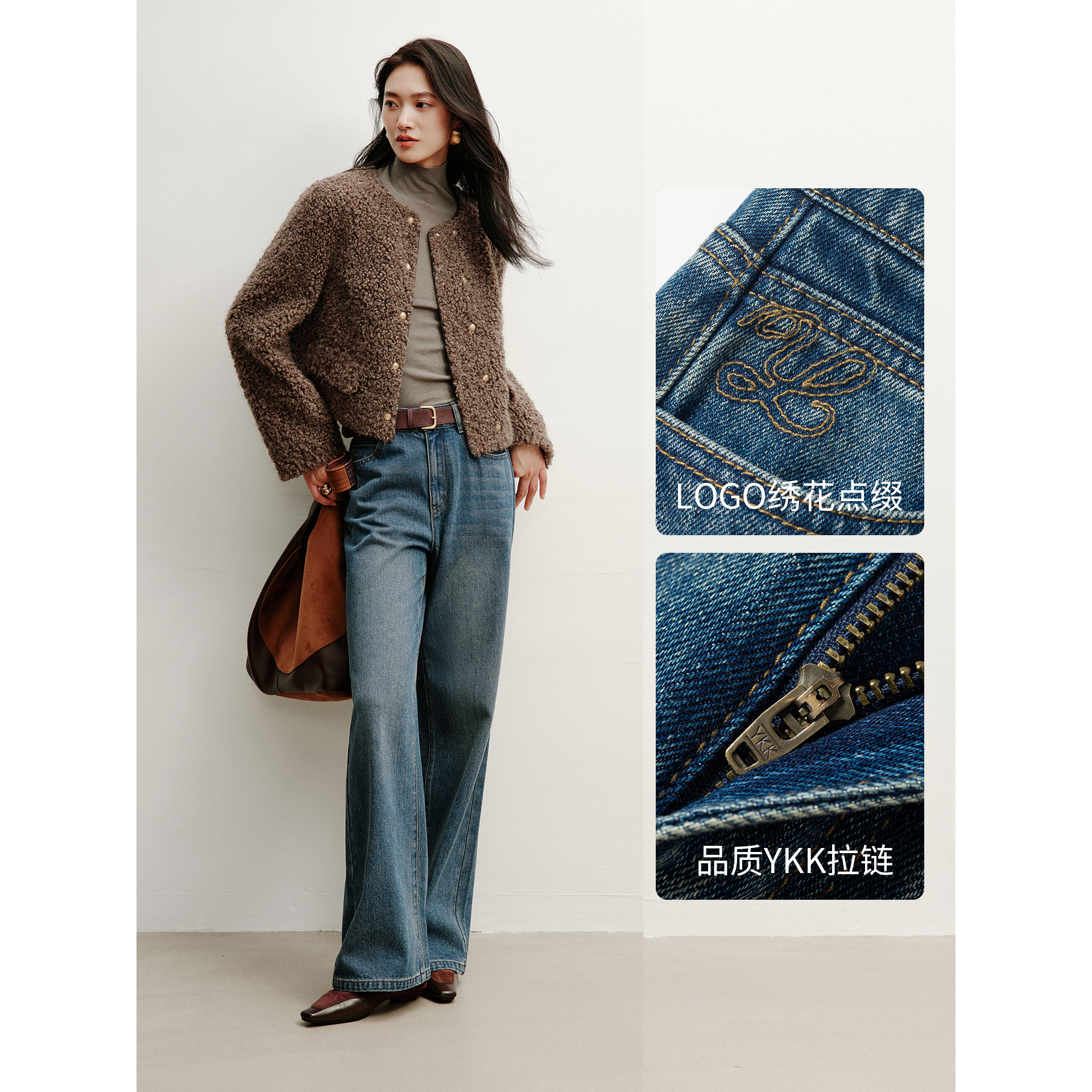 预售返50元 宽松直筒长裤 衣香丽影磨毛牛仔裤 新款 子 女2025冬装
