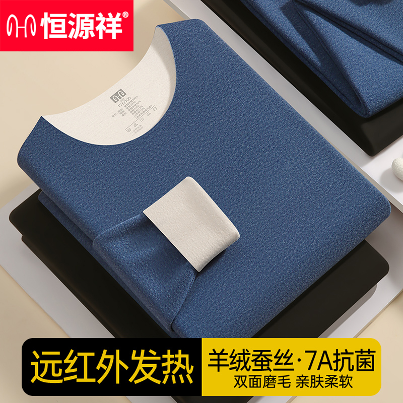 冬羊绒蚕丝 防寒新款 恒源祥保暖内衣男加绒加厚套装 中老年秋衣秋裤