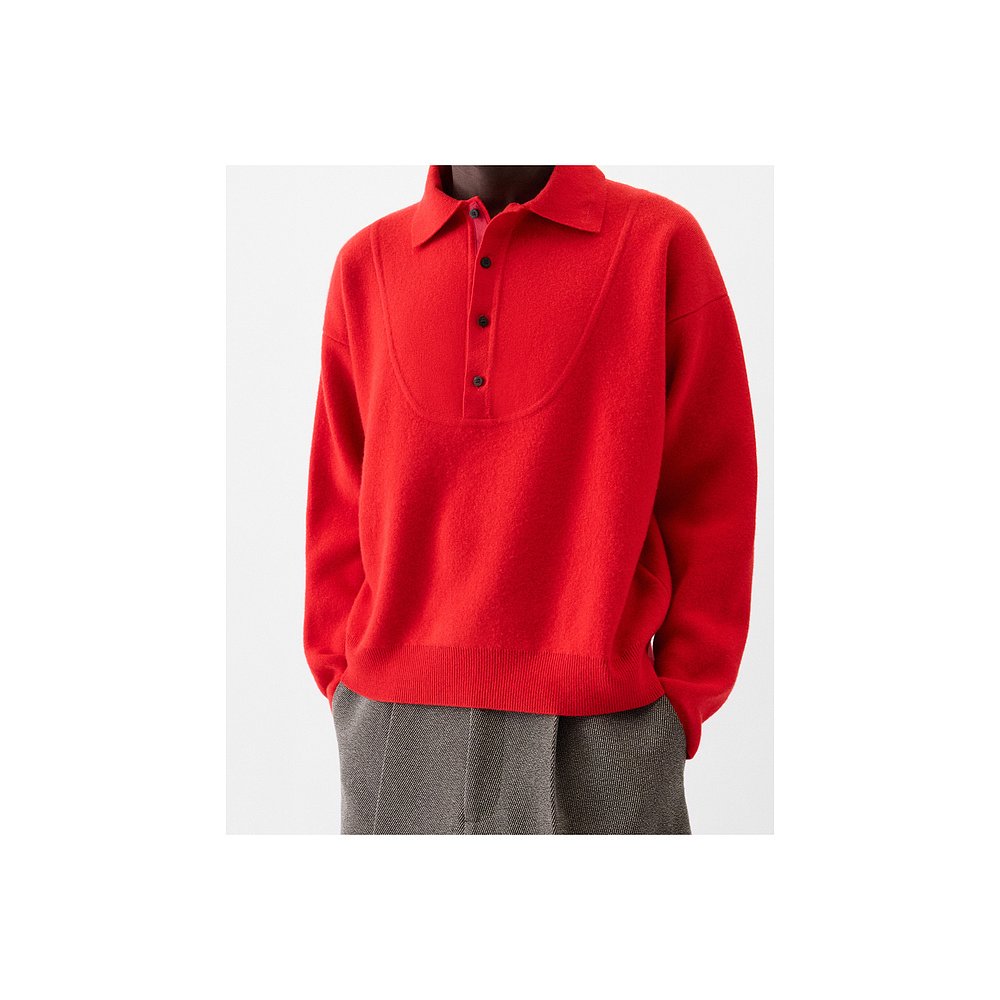 层次感 MOCO毛衣绵羊毛山羊绒假两件亨利领落肩针织衫 双11预售