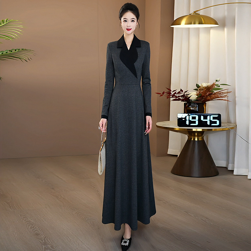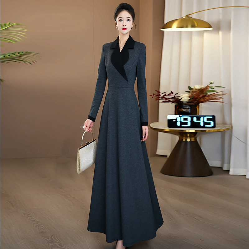 时尚 提花连衣裙2025新款 气质显瘦中长裙子 长袖 宝诗黎翻领钉珠秋季