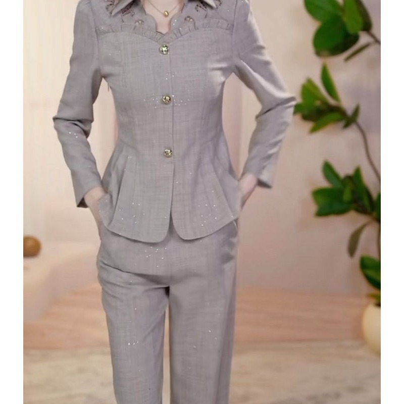 高级休闲显瘦洋气中年妈妈气质上衣长裤 秋季 套装 时尚 俩件套 女新款