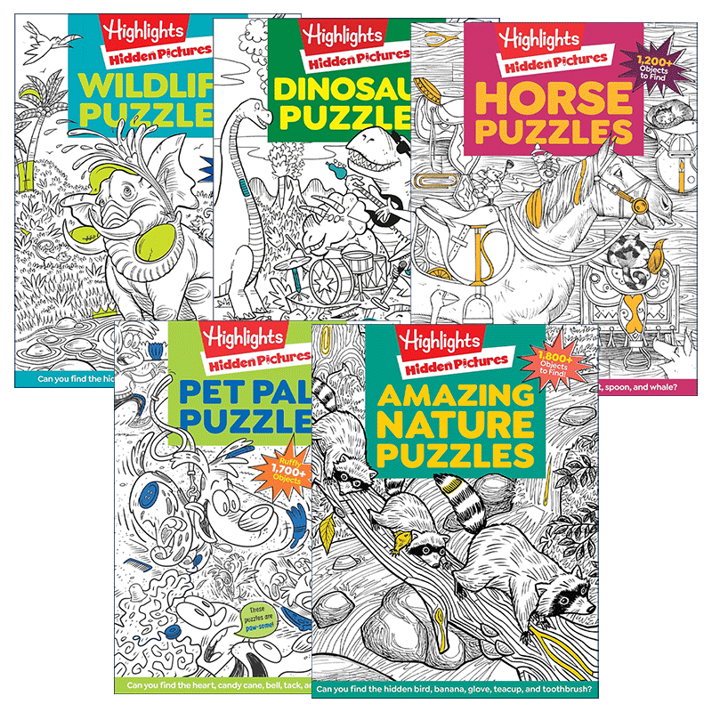 Pictures 寻找隐藏图片动物主题5册 进口英语原版 Highlights 书籍 英文版 Hidden 提高注意力 英文原版 亮点儿童益智游戏活动书