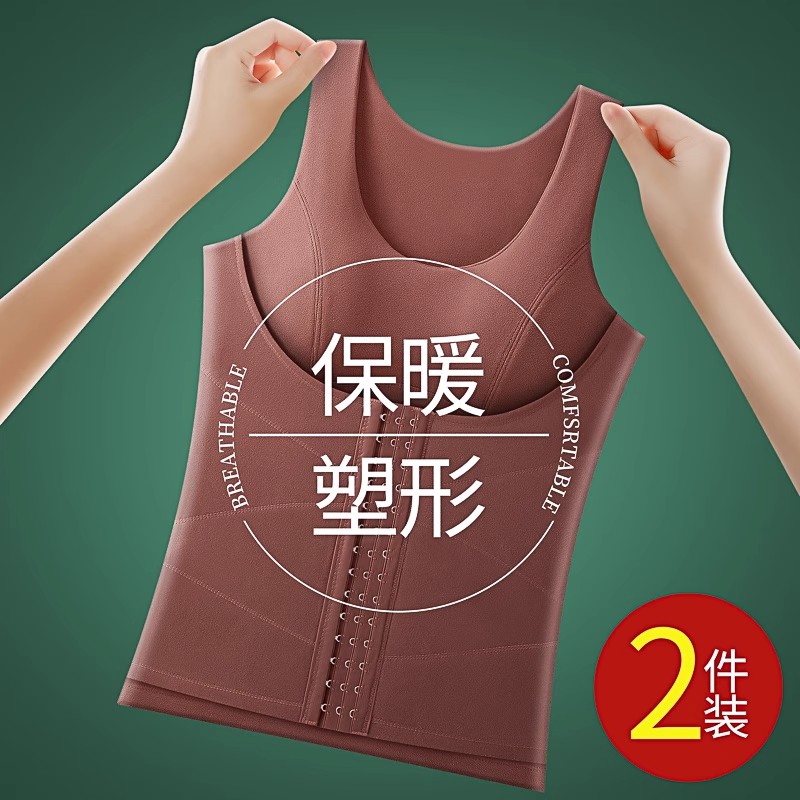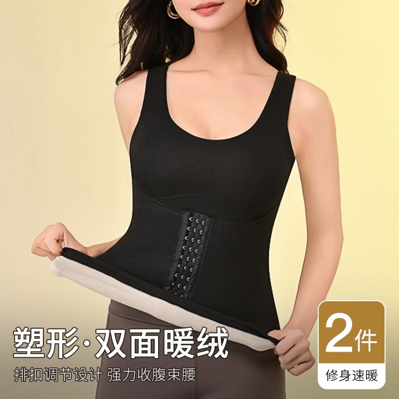 发热德绒保暖背心女加绒加厚无痕免穿文胸排扣塑身收腹腰打底内衣