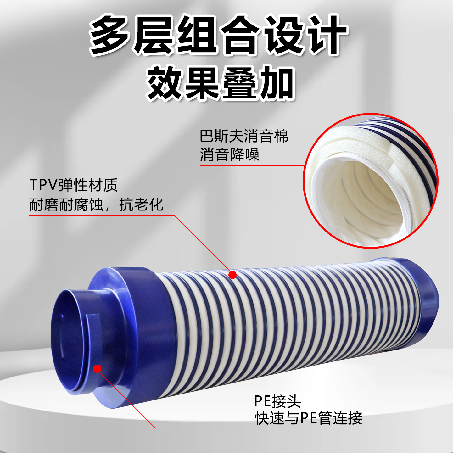 新风强力消音管风机系统消声末端软管75降噪110出风管配件消声器