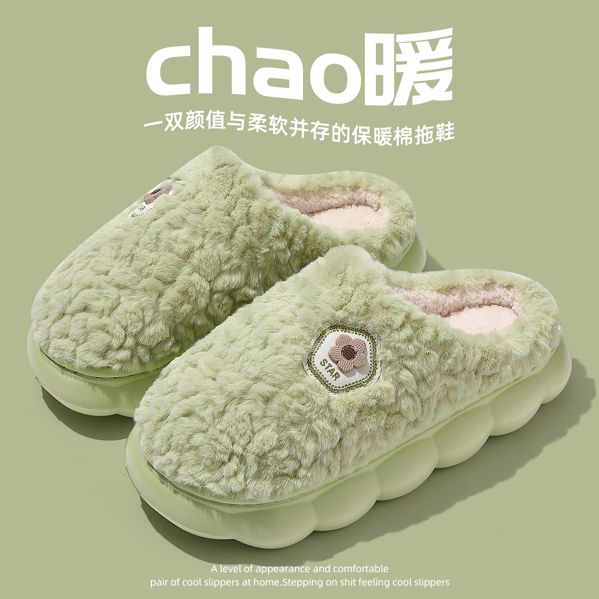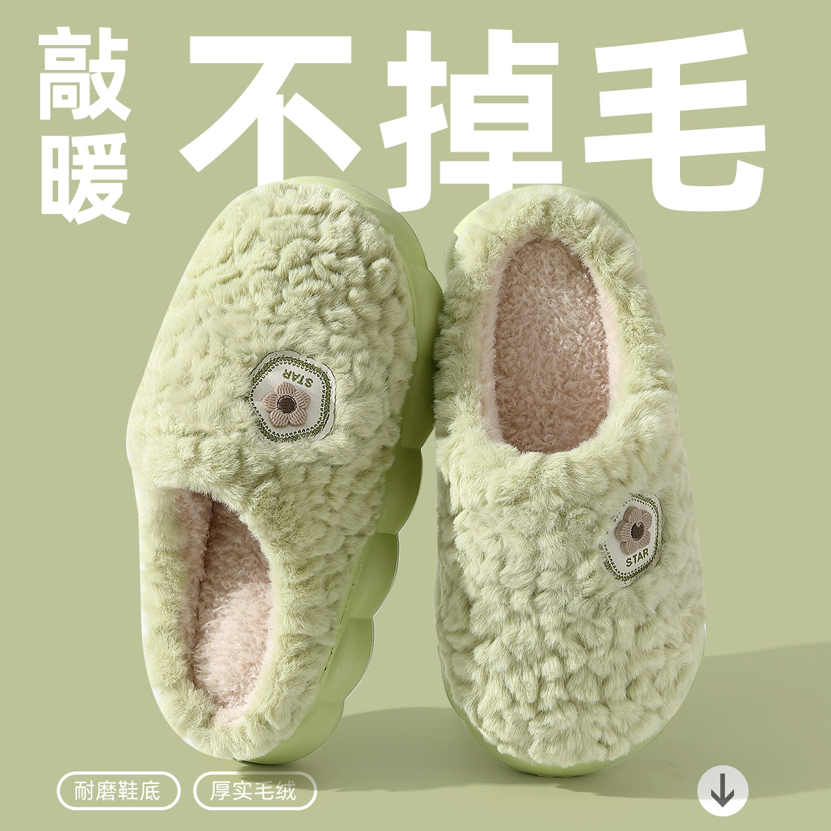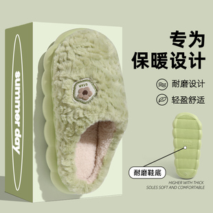 家居室内防滑加绒保暖毛拖鞋 2025新款 女士秋冬季 厚底踩屎感棉拖鞋