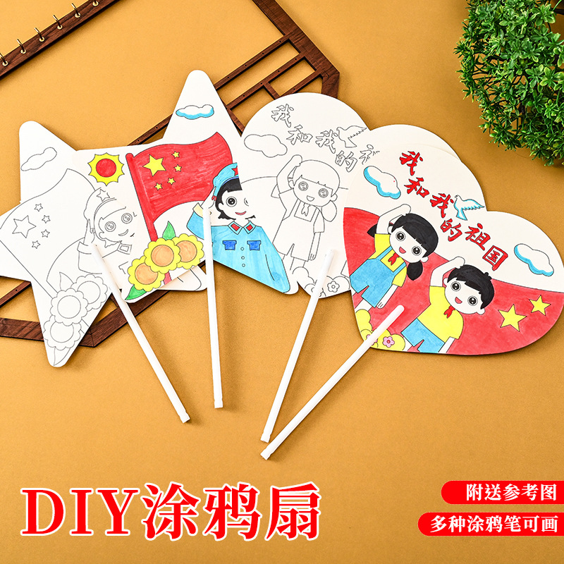 2025新款 国庆主题幼儿园手工作品diy材料包儿童涂色亲子涂鸦扇子