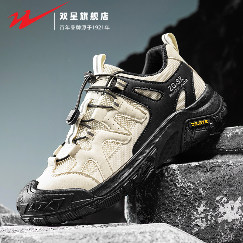 防滑厚底耐磨劳保潮鞋 双星男鞋 户外登山运动休闲鞋 黑色男士 春秋款