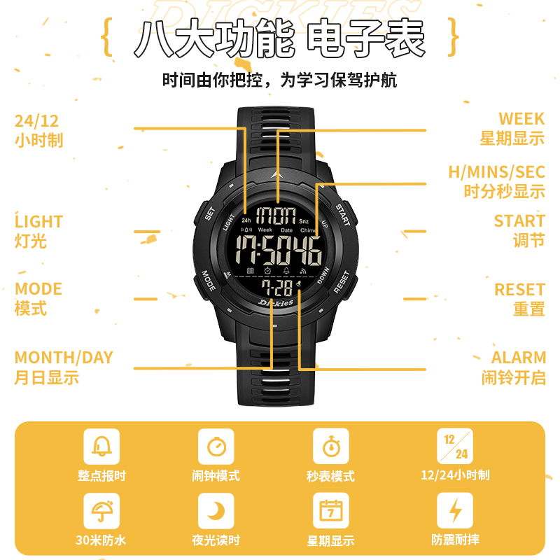 Dickies电子手表男款 初高中大学生校园运动男孩青少年生日礼物739