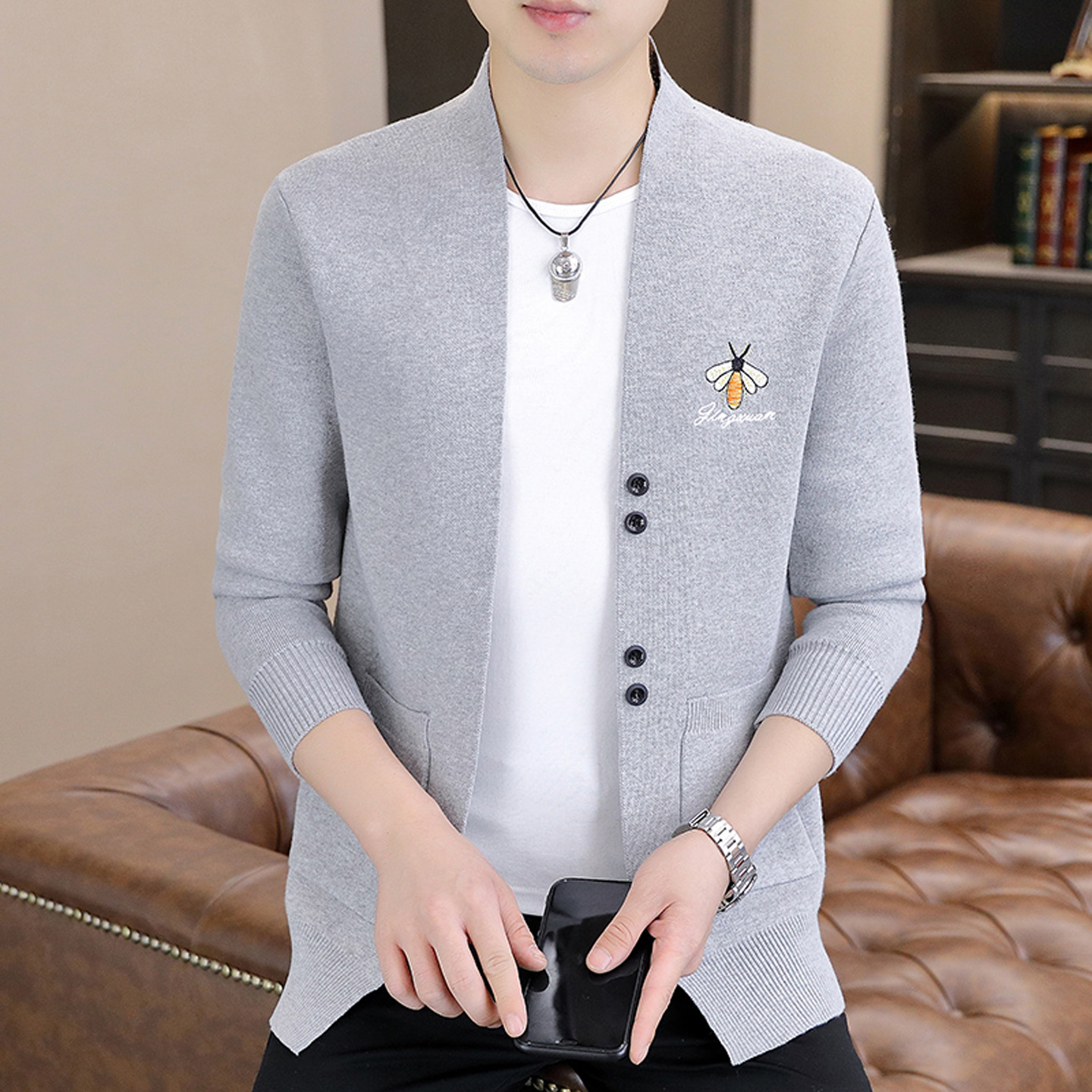 针织开衫 2025新款 男款 秋装 刺绣毛线衣 男士 上衣薄款 毛衣外套春秋款