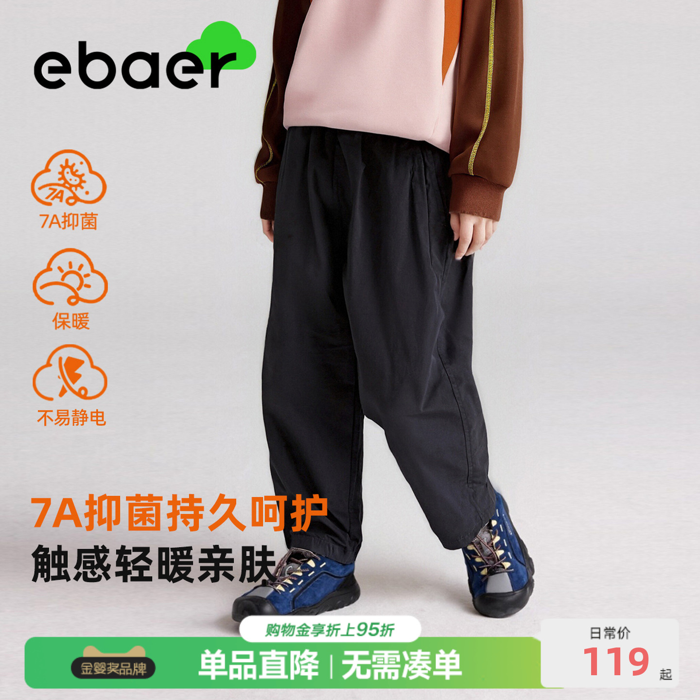 女童萝卜裤 ebaer儿童加绒加厚休闲裤 男童抑菌长裤 新款 子 2025冬装