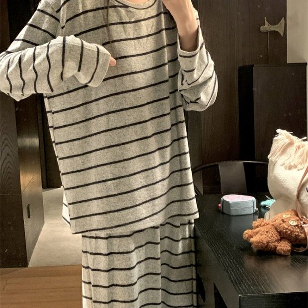 雪花绒锁温保暖可外穿宽松睡衣家居服秋冬天加绒加厚女法兰绒套装