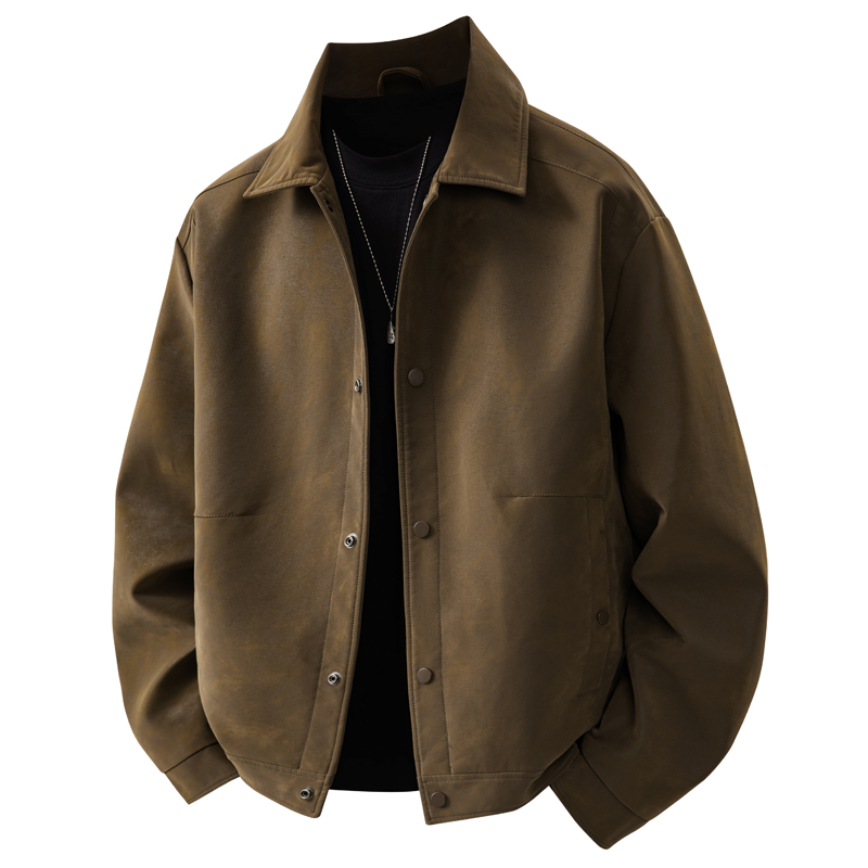 潮牌百搭皮夹克上衣服 2025新款 罗蒙美式 复古麂皮绒皮外套男春秋季