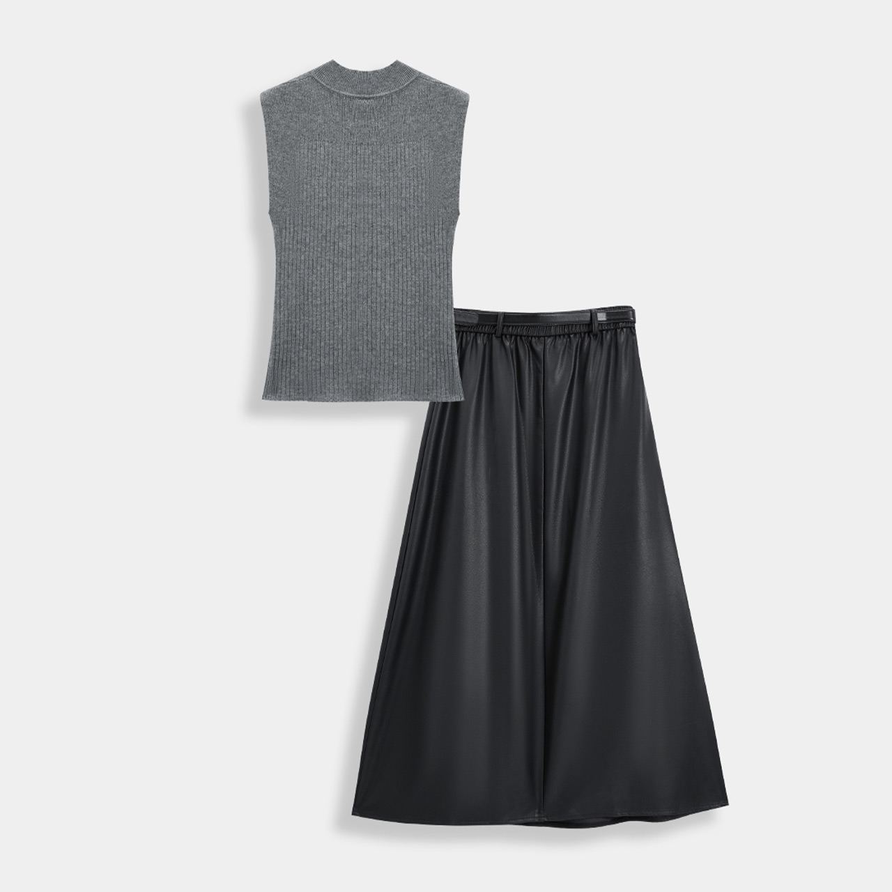 气质感毛织背心半身裙显瘦套装 新款 爱依服一整套穿搭2025秋季 IEF