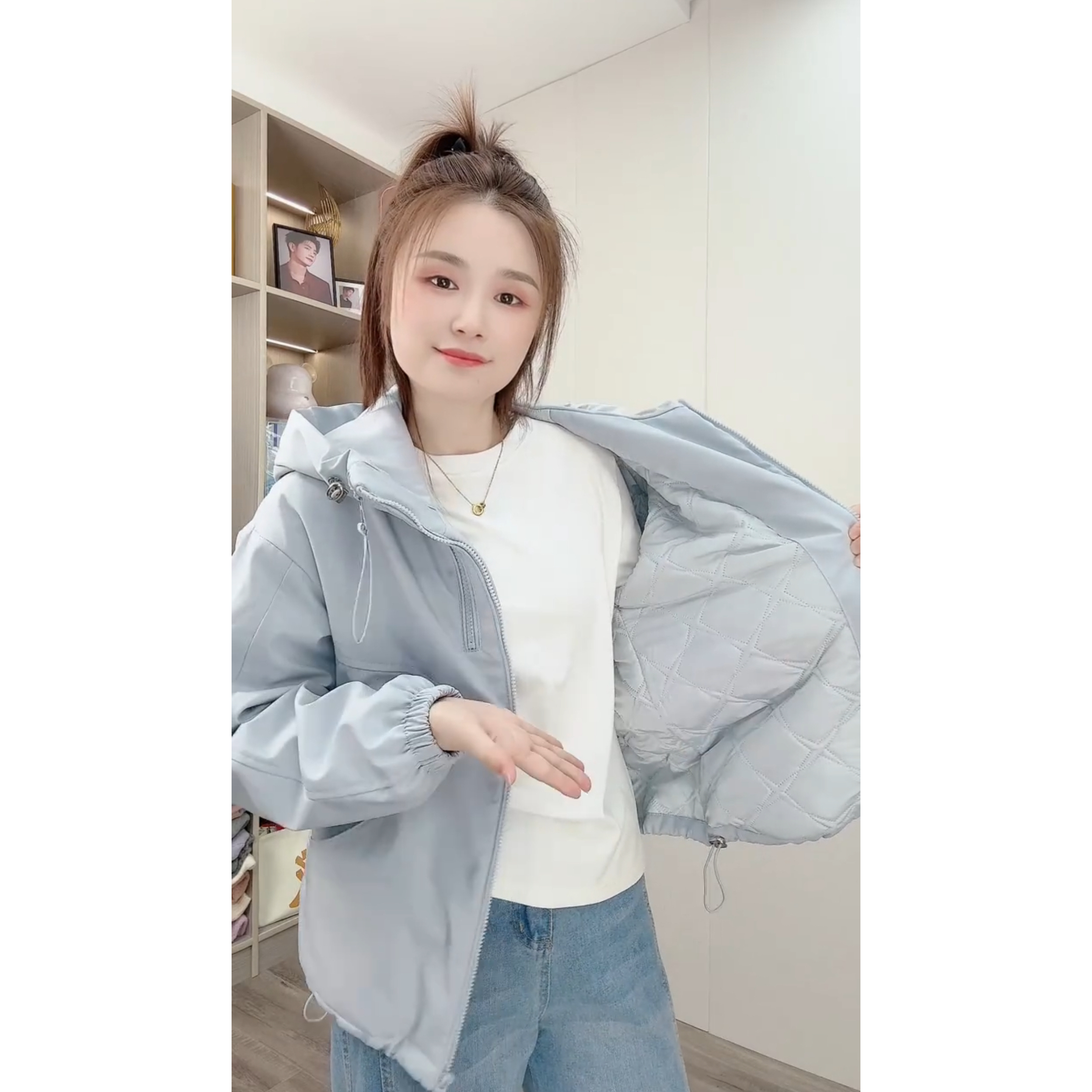 花概念连帽棉服外套韩系设计款 运动风加厚外套百搭显瘦保暖上衣