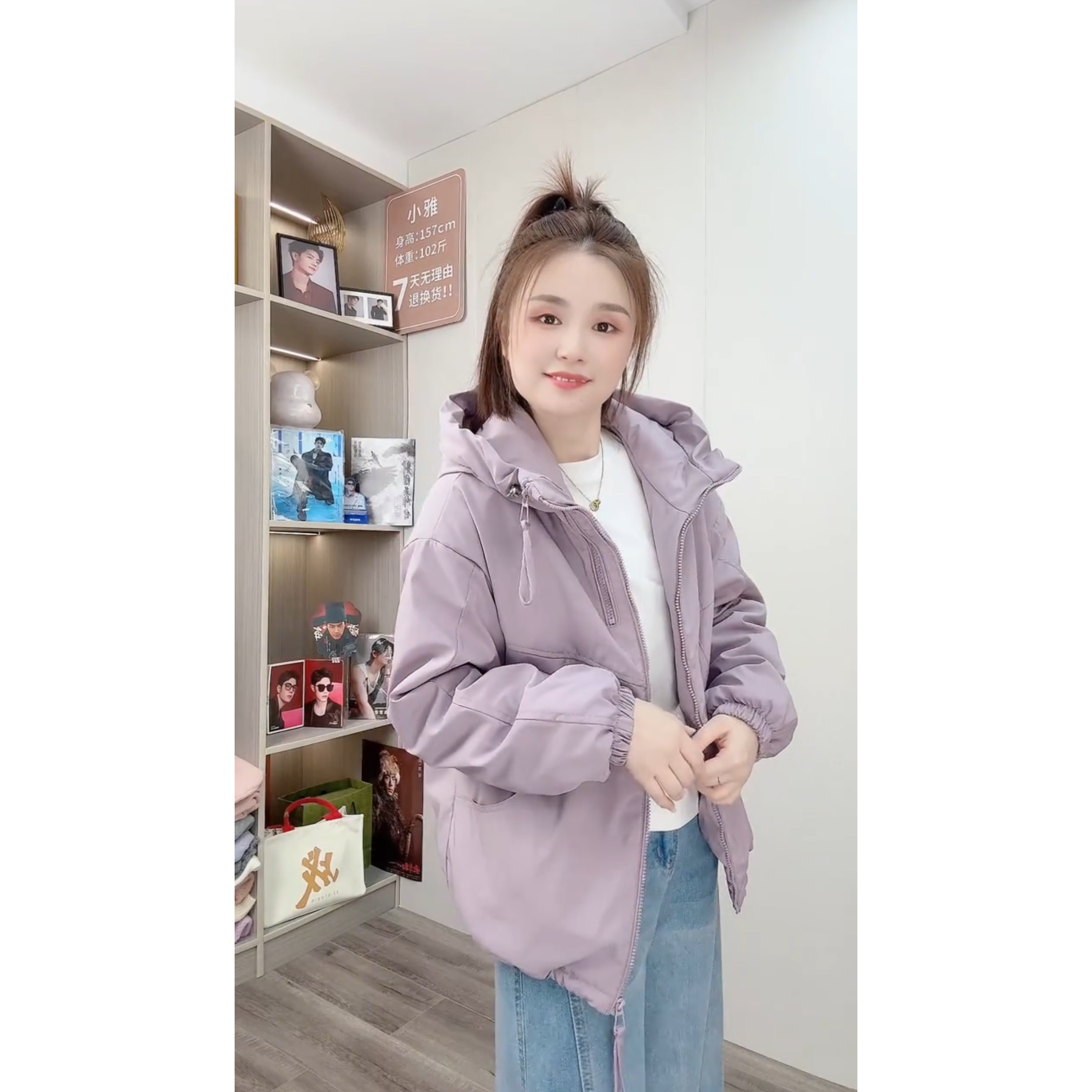 小个子加厚棉衣面包服外套宽松棉袄 新款 连帽羽绒棉服女短款 秋冬季